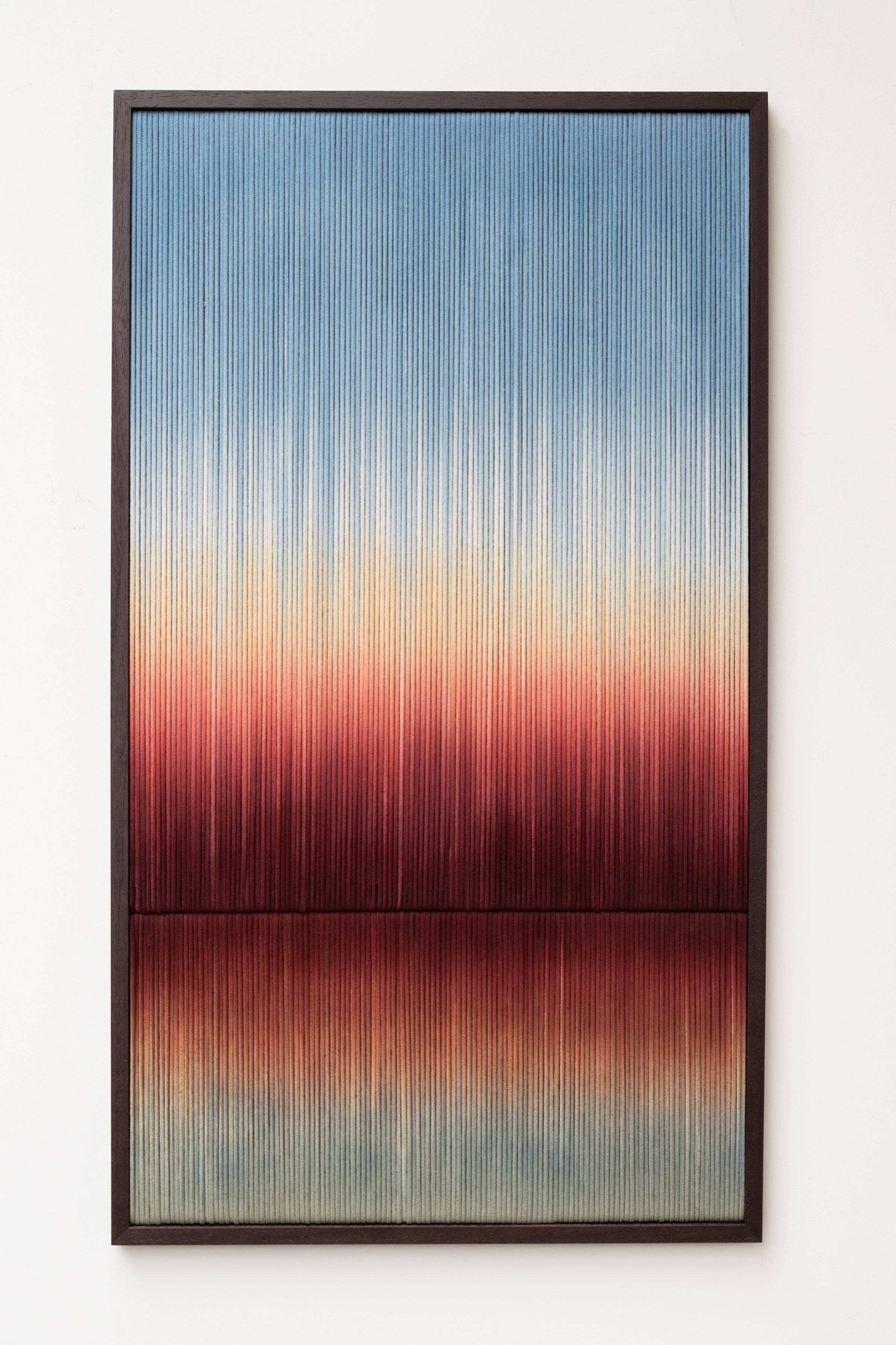 This series introduces 7 framed textile pieces that explore the interplay of texture, color, depth, and light. Where lines, reflections and horizons play a central theme.