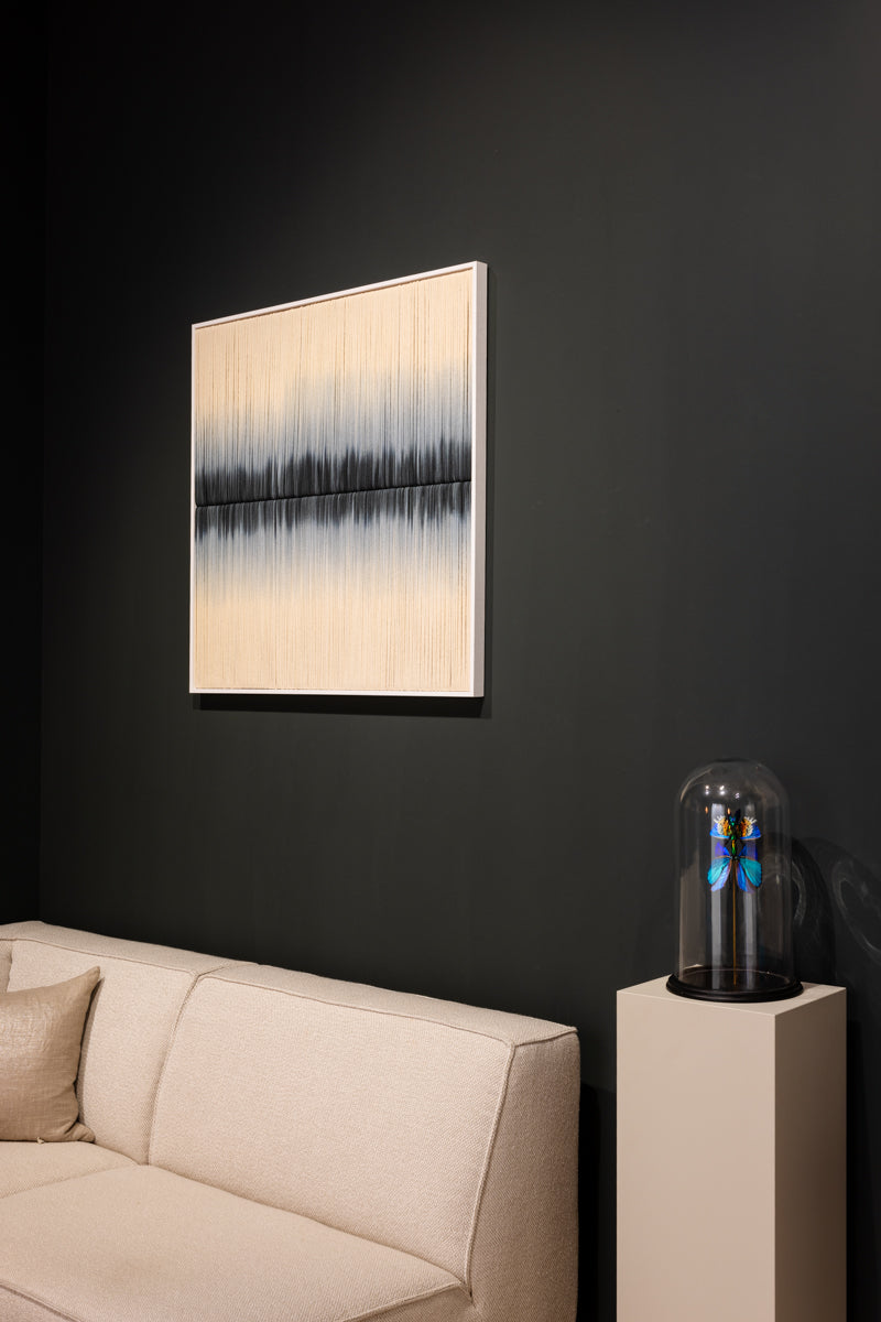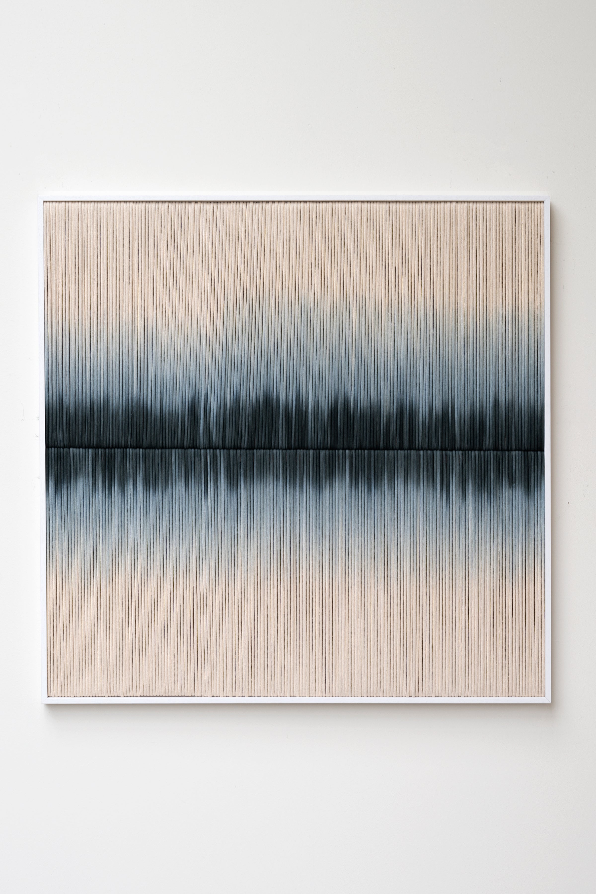 This series introduces 7 framed textile pieces that explore the interplay of texture, color, depth, and light. Where lines, reflections and horizons play a central theme.
