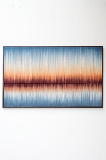 This series introduces 7 framed textile pieces that explore the interplay of texture, color, depth, and light. Where lines, reflections and horizons play a central theme.